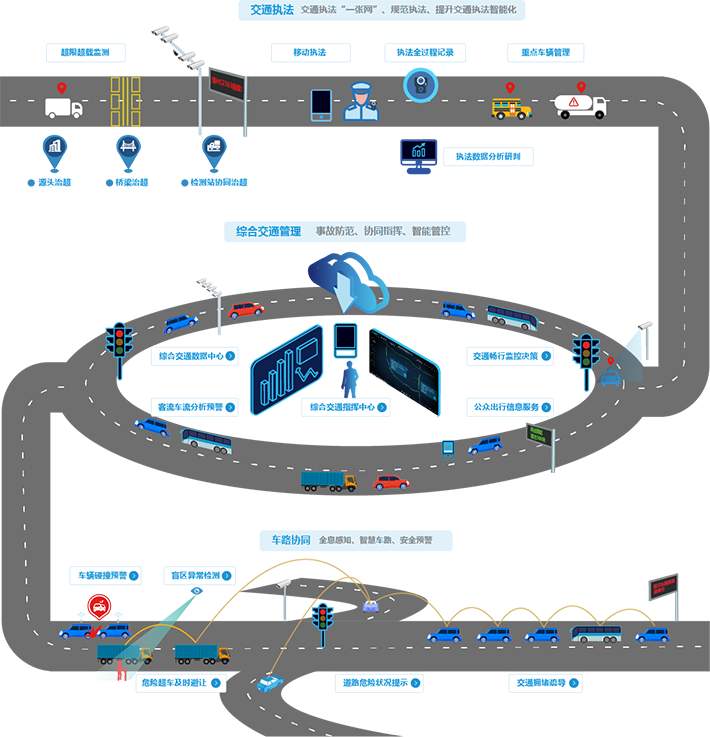 东方世纪融合新一代信息技术,汇集各种交通信息资源,将治超非现场执法、源头治超、流动治超、入口治超、超限检测站、桥梁治超等相关业务与前沿技术统一整合,形成区域一体化动态交通超限超载治理中心,提供一站式解决方案,达到各系统互联互通,全面提升交通运输超限超载监管效率和服务水平。